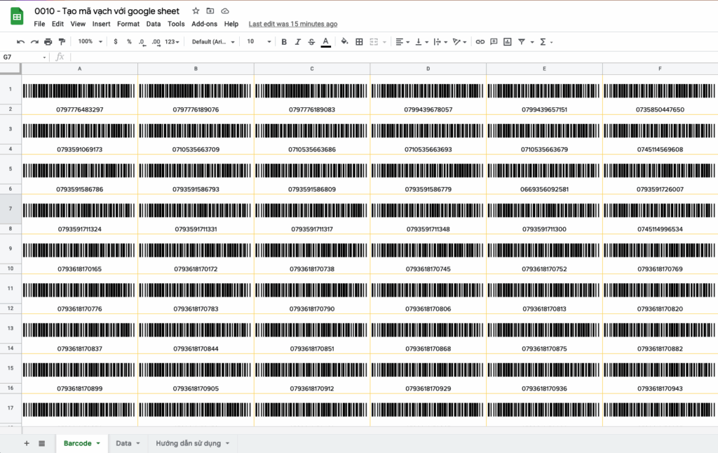 Tạo mã vạch với Google Sheet