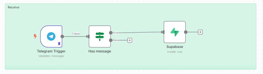 Luồng nghe: Lưu tin nhắn telegram vào Supabase